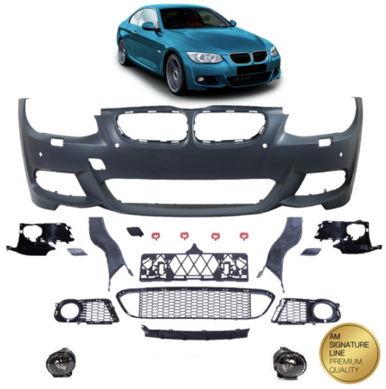 Pare-chocs avant pack M pour BMW série 3 E92 et E93 phase 2 de 04/2010 à 2014 avec PDC Matière ABS comme à l'origine Prêt à peindre Avec emplacements radar PDC Emplacements pour lave phares Grilles fournit