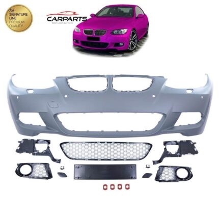 PARECHOC AVANT PACK M / SPORT DESIGN POUR BMW SERIE 3 E92 ET E93 PHASE 1 DE 2006 A 03/2010 MATIÈRE ABS APPRETÉ - PRET A PEINDRE GRILLES ET ANTIBROUILLARDS FOURNIT SUIVANT VOTRE OPTION DE COMMANDE AVEC TROUS PDC EMPLACEMENTS LAVE-PHARES